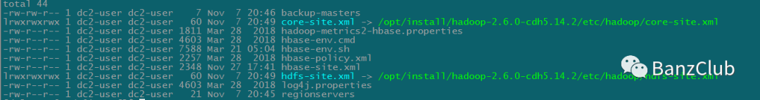 cd /opt/install/hbase-1.2.0-cdh5.14.2/conf/# 配置hbase-env.shvim hbase-env.shexport JAVA_HOME=/opt/install/jdk1.8.0_141export HBASE_MANAGES_ZK=false# 设置ssh端口,非默认22export HBASE_SSH_OPTS="-p 12324"# 修改hbase pid文件位置export HBASE_PID_DIR=/opt/install/hbase-1.2.0-cdh5.14.2/pids# 配置hbase-site.xmlvim hbase-site.xml<configuration><property><name>hbase.rootdir</name><value>hdfs://node01:8020/HBase</value></property><property><name>hbase.cluster.distributed</name><value>true</value></property><!-- 0.98后的新变动,之前版本没有.port,默认端口为60000 --><property><name>hbase.master.port</name><value>16000</value></property><property><name>hbase.zookeeper.quorum</name><value>node01,node02,node03</value></property><property><name>hbase.zookeeper.property.clientPort</name><value>2181</value></property><property><name>hbase.zookeeper.property.dataDir</name><value>/opt/install/zookeeper-3.4.5-cdh5.14.2/zkdatas</value></property><property><name>zookeeper.znode.parent</name><value>/HBase</value></property></configuration># 配置 regionserversvim regionservers# 指定hbase从节点node01node02node03# 配置 backup-mastersvim backup-masters# node02作为备份的HMaster节点node02# 分发到集群其他节点scp -P 12324 -r /opt/install/hbase-1.2.0-cdh5.14.2/ node02:$PWDscp -P 12324 -r /opt/install/hbase-1.2.0-cdh5.14.2/ node03:$PWD# 创建软连接,HBase集群需要读取hadoop的core-site.xml、hdfs-site.xml的配置文件信息ln -s /opt/install/hadoop-2.6.0-cdh5.14.2/etc/hadoop/core-site.xml /opt/install/hbase-1.2.0-cdh5.14.2/conf/core-site.xmlln -s /opt/install/hadoop-2.6.0-cdh5.14.2/etc/hadoop/hdfs-site.xml /opt/install/hbase-1.2.0-cdh5.14.2/conf/hdfs-site.xml