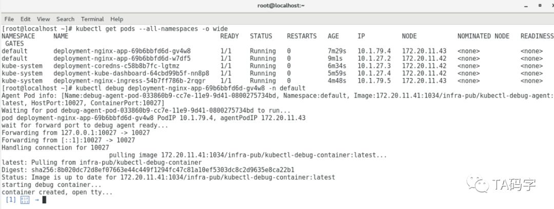 查看nginx application的pods开启并调试:
