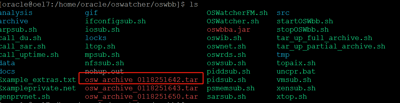 2、oswatcher是我在ORACLE用户目录新建的目录,用于存在解压后工具包。