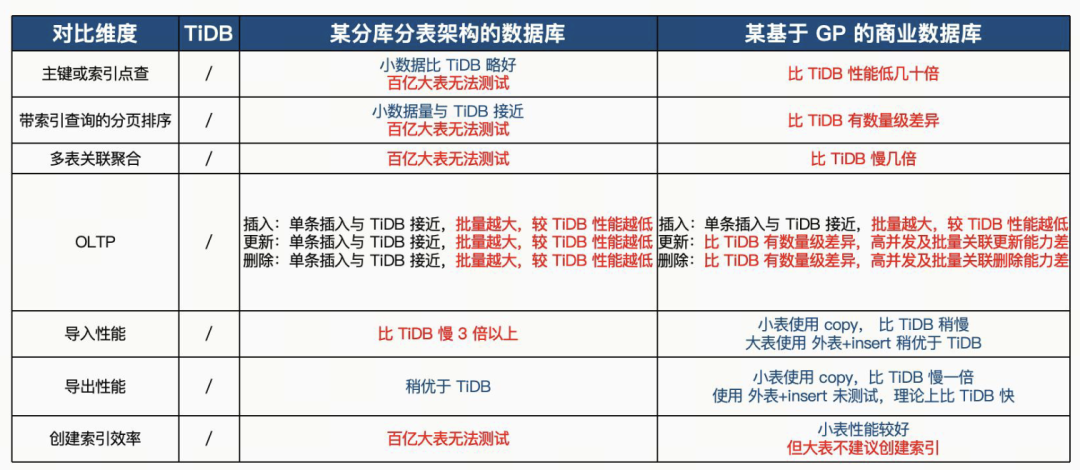TiDB 超过 2 TB 级别混合场景中,运维、管控、数据处理、弹性扩容等场景均表现优秀。经过综合评估,TiDB 在 GPT(General Purpose Transactional Processing,通用事务处理)得分上脱颖而出:
