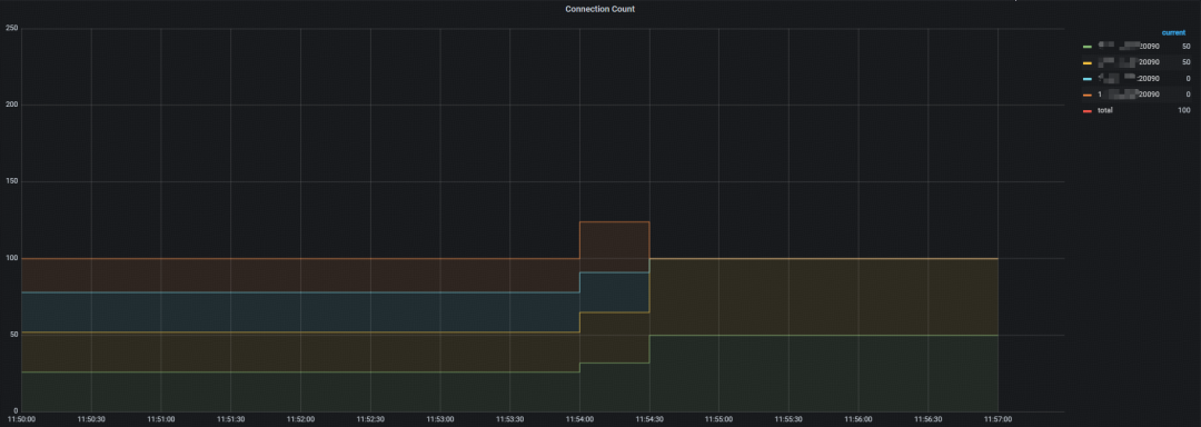进一步观察各 tidb server 连接数情况,连接数分别为 50/50/0/0,说明在运行过程中连接被自动迁移到剩余的 2 台 tidb server 节点,无须手工介入。