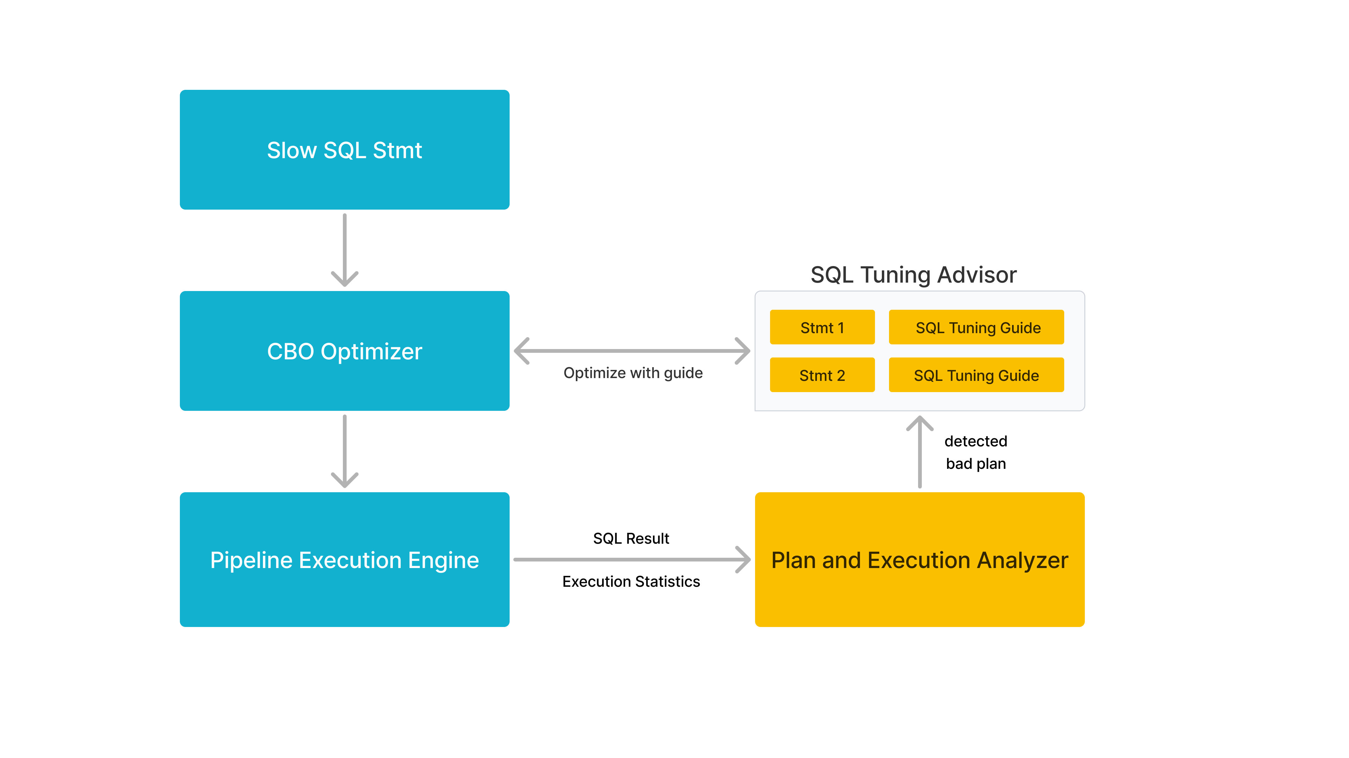 同时,V3.4 还提供了 Query Feedback 功能,这是利用历史查询计划优化未来查询性能的一项重要进展。通过该功能,系统会持续收集慢查询,根据执行详情自动分析一条 SQL 的Query Plan 是否存在潜在的优化空间,并可能生成专属的调优建议。当后续遇到相同的查询时,系统能够对此 Query Plan 进行局部调整,以生成更高效的 Query Plan,从而进一步提升查询性能。