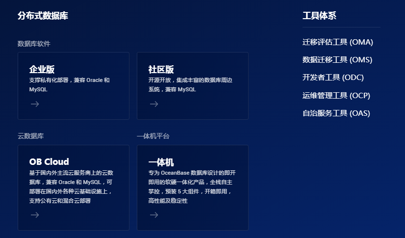 OceanBase 数据库(OceanBase Database)是一款完全自研的企业级原生分布式数据库,在普通硬件上实现金融级高可用,首创“三地五中心”城市级故障自动无损容灾新标准,刷新 TPC-C 标准测试,单集群规模超过 1500 节点,具有云原生、强一致性、高度兼容 Oracle/MySQL 等特性。