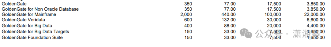 上面列举了数据库相关的一些收费组件,还有很多中间件,外部安全组件等也都是收费的如OGG(Oracle GoldenGate)