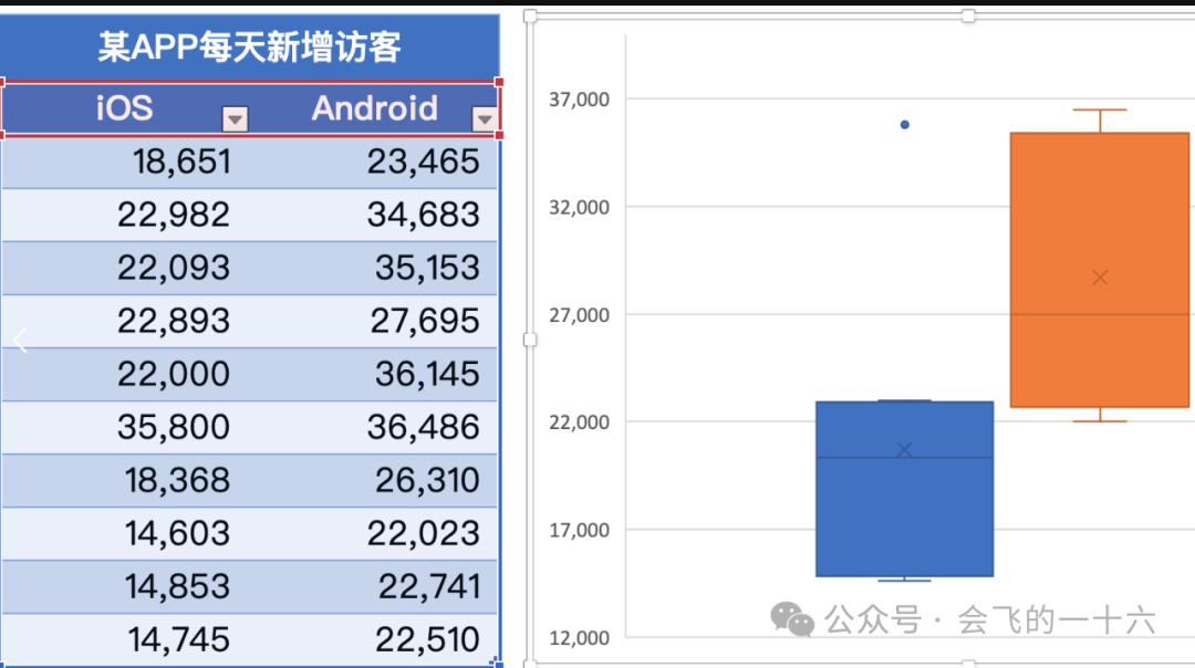 并且还提供了一个分析图表——箱线图来辅助分析。
