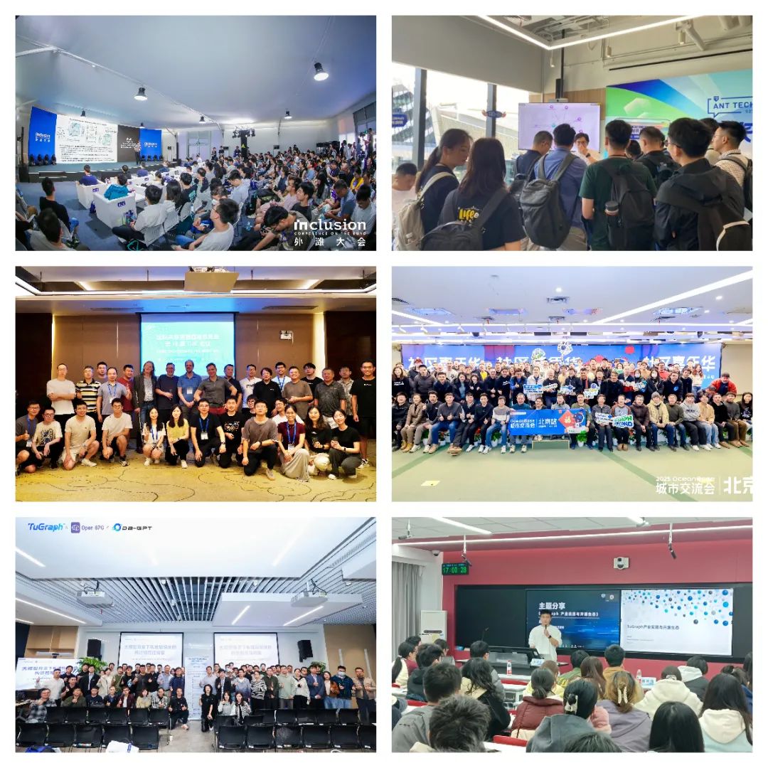 2024年,TuGraph 社区参与和组织了50多场线上线下活动,吸引了数万名开发者、用户参与。今年我们强烈感受到了越来越多人对图技术的关注,也通过与 OpenSPG、DB-GPT、OceanBase 等生态伙伴联合互动,拓展了交流的技术边界。