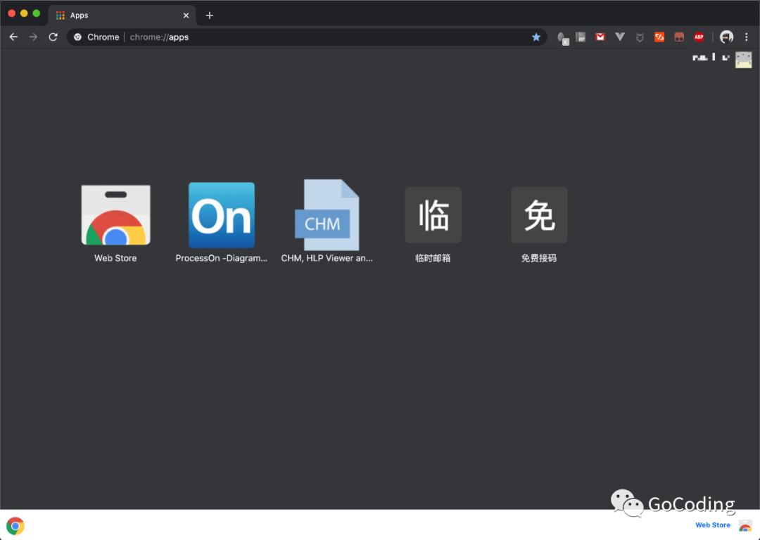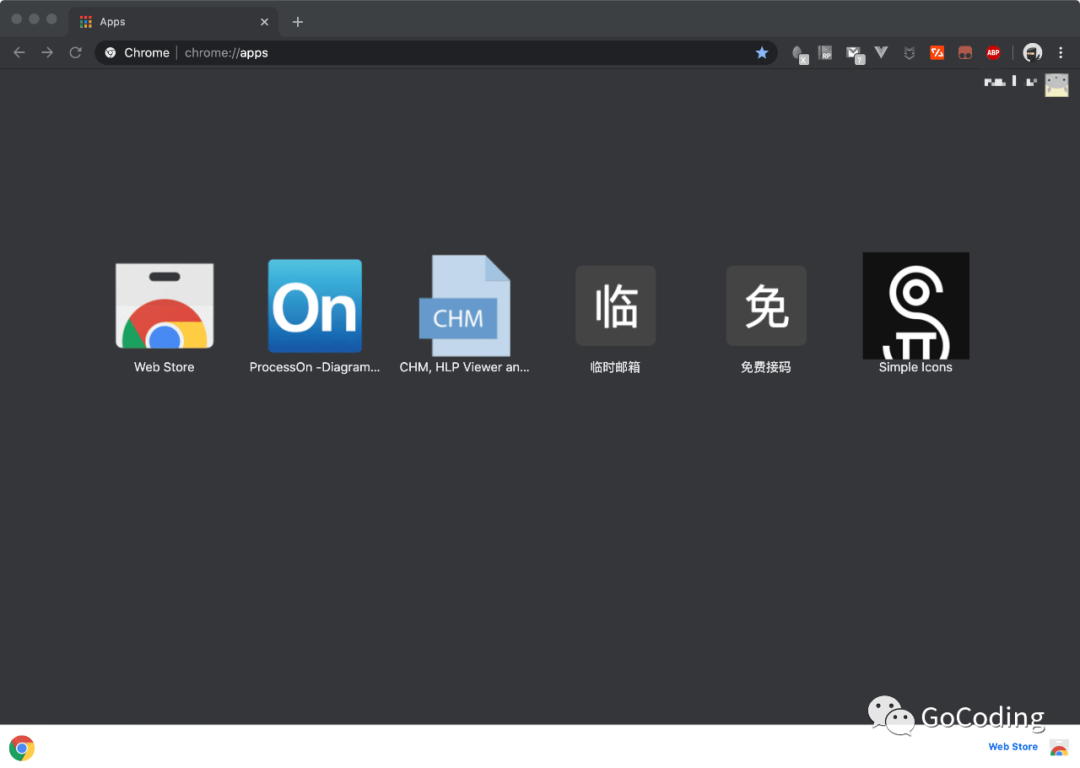 打开 Chrome 浏览器,输入 chrome://apps ,即可打开应用页面: