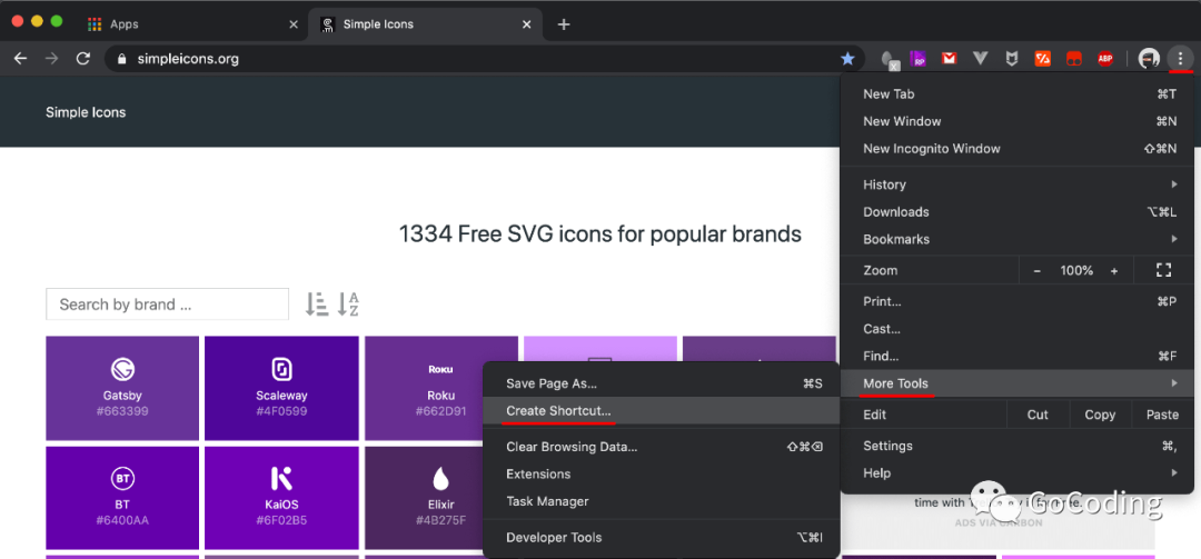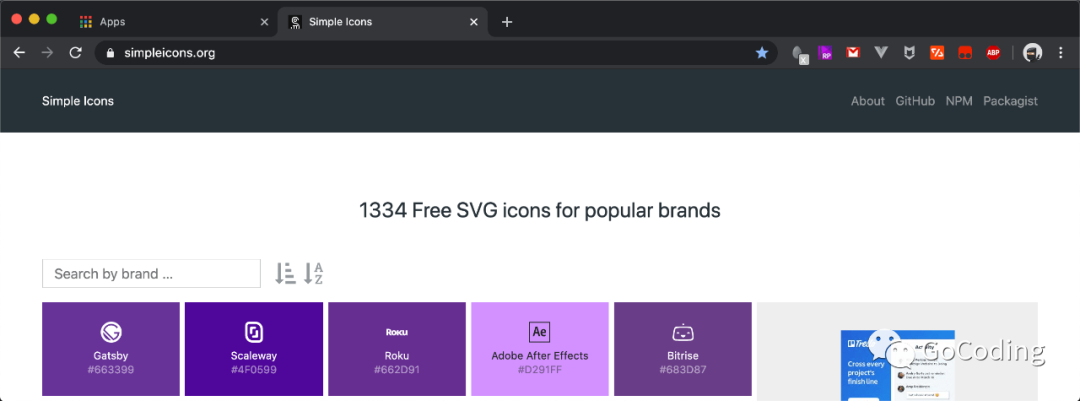 Step 1. Chrome 打开某个网页,如:https://simpleicons.org