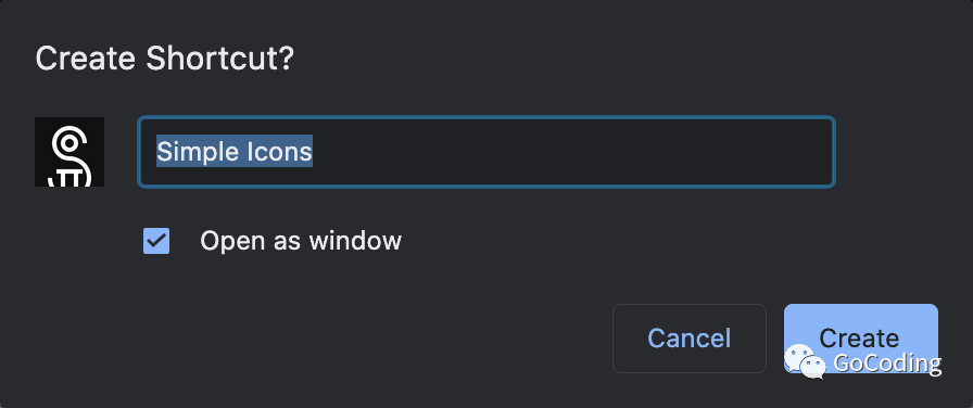 Step 3. 勾选「Open as window」,允许独立窗口打开网页。然后「Create」