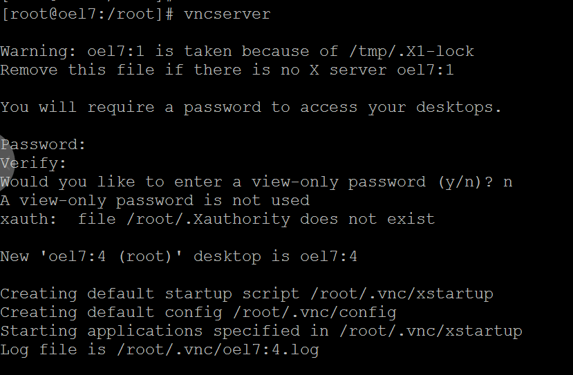 以root用户或其它用户启动录入命令vncserver