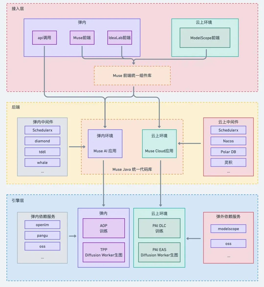 我们积累了一套基于公有云的 Muse 部署方案。该方案具备一定的可复制性,可以允许新的客户在公有云上部署一套完全相同的产品。在 2024 年云栖大会期间,也的确有客户表达出了希望私有化部署一套 Muse 的诉求。因此展望一下未来,除了支撑集团内外的大量业务场景之外,Muse 也许可以作为一套整合公有云各类 IaaS、PaaS 层产品,可以独立部署的 AI 高阶 SaaS 应用。