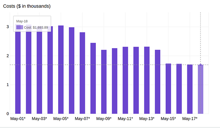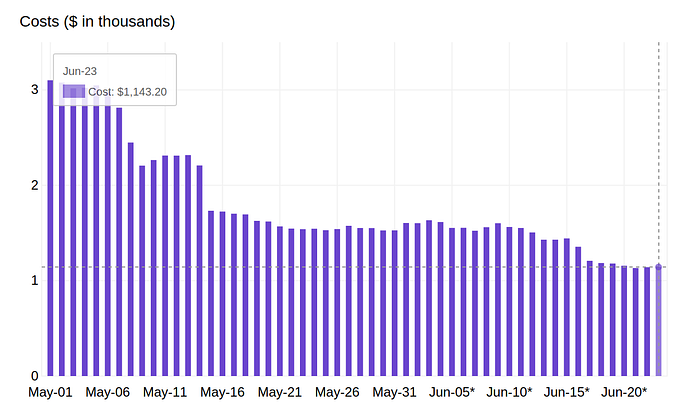 在这个阶段的最后几周,我们取得了最大的进展,特别是在 6 月 24 日左右。经过最后四周的努力,我们成功将大部分缓存负载从 AWS S3 转移到了自有的 Cassandra 集群。此时,AWS 的每日费用已经降至 1,100
