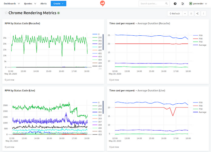 在五月初,第一批服务器开始投入运行,Prerender 的 1%