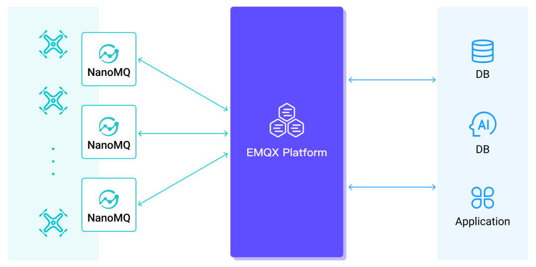 在智能光伏电站系统中,每架无人机都配备了图像捕捉能力和初步的图片分析功能。无人机先将处理后的数据以 JSON 格式传输至边缘端的 NanoMQ 进行数据聚合,然后转发至云端的 EMQX Platform,通过其内置的规则引擎将数据高效分流到时序数据库、AI 分析模块和各类应用端中,确保了从采集到分析的数据流无缝衔接。EMQX Platform 为智能光伏电站系统带来的核心价值体现在以下几个方面:通过 4G 通信模块,无人机与云端 EMQX Platform 保持双向通信,控制无人机全自动飞行。基于 EMQX 提供的毫秒级低延迟通信保障,设备和平台之间可以维持实时信息交互,保证了巡逻路径遵循预设规则,任何偏差都能迅速得到纠正。无人机每秒会传输大量数据到云端,而 EMQX Platform 和 NanoMQ 都具备处理每秒百万级数据吞吐的能力。此外,EMQX 还支持通过硬件资源扩展增强数据处理能力,确保满足不断扩大的业务需求。平台依托云端 EMQX Platform 进行命令下发,可以精确控制无人机的启动、停止等操作,并记录所有飞行任务的状态,方便用户快速回顾历史任务并规划未来的飞行任务,提高了操作效率和用户体验。无论是无人机运行还是平台本身都对可靠性和稳定性有要求,需要保持无人机能在高吞吐、高并发的情况下进行数据传输。EMQX Platform 支持完整的 MQTT 协议中的 QoS 机制,为设备端平台和边缘端无人机的平稳运行奠定了基础。