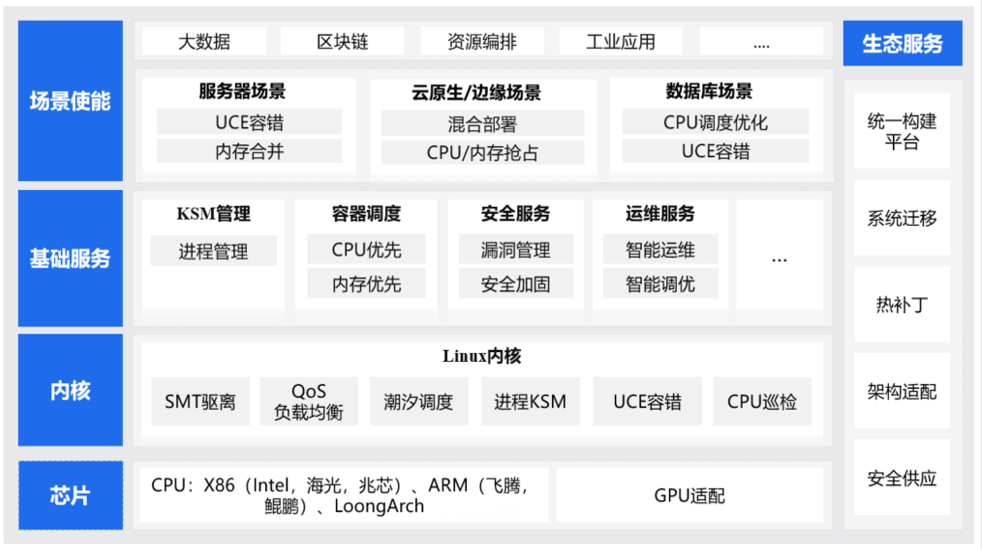 稳定性和可靠性要求高:政务云平台承载政府办公、民生服务、疫情防控等关键业务,需要 7×24 小时不间断服务,如果出现服务中断、服务降级等各种异常情况,影响非常严重。 适配难度大: 作为底层软件基础设施,InLinux必须要保证可用性,实现与底层异构硬件、整机、上层多样化软件的深度适配,保障自身的安全可靠运行。 效率和性能的极致提升: 政务云对计算、存储、网络性能要求严格,需要实现软硬件全栈调优。