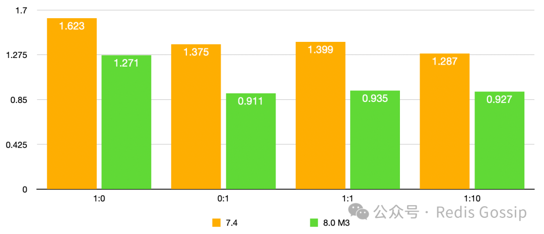 从测试对比来看,新版本的 Async IO Thread 较 7.4 QPS 至多可提升 1 倍以上,P99 延迟下降 30% 以上。需要补充说明的一下,1:10 的写读比例压测时,7.4 版本 key miss 率超过了 50%,新版本为 35% 左右。