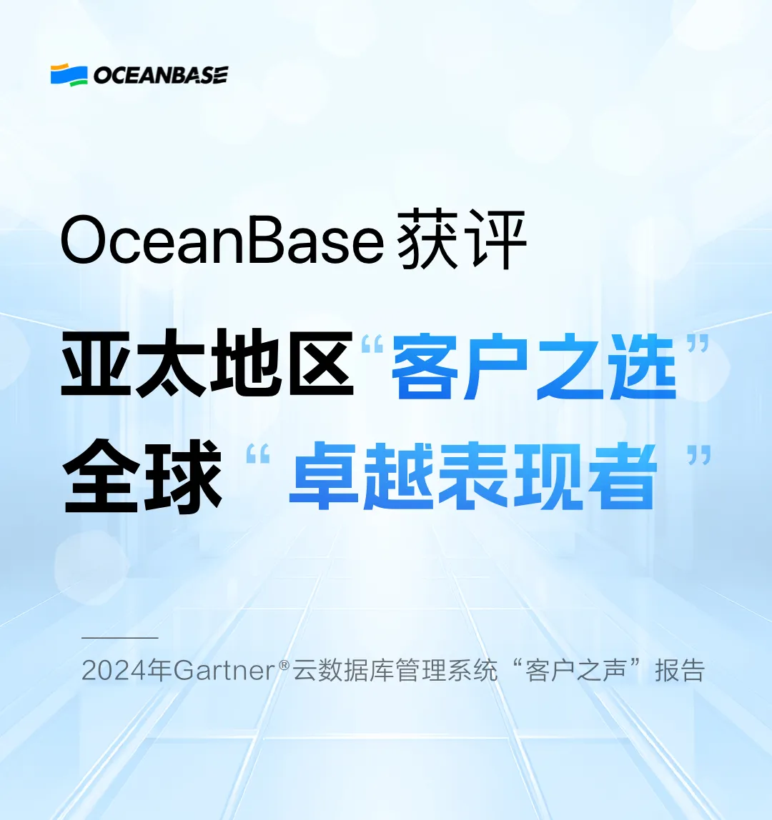 凭借一体化的架构优势和领先的产品能力,OB Cloud 屡获权威机构认可,2023 年成功入选 Gartner 云数据库管理系统魔力象限荣誉提及,2024 年入选 Gartner 云数据库亚太地区“客户之选”和全球“卓越表现者”。