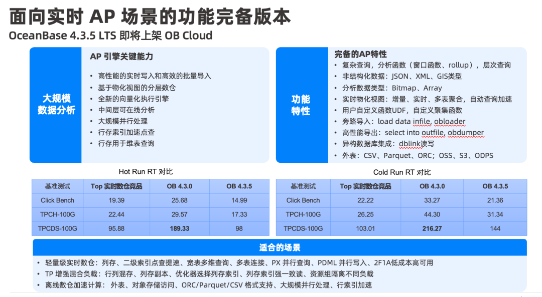 一、OceanBase 4.3.5 LTS 发版面向 AP 场景,拥抱 Al 浪潮