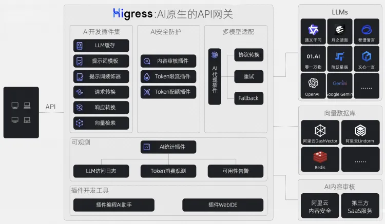 而 Higress 作为一款开源的 AI 网关工具,可以提供基于灰度+观测的平滑迁移方案。