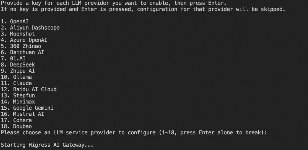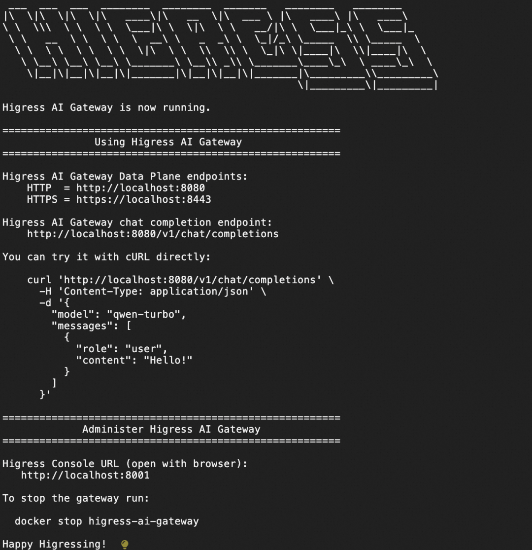 配置完provider,AI网关就启动完成了:
