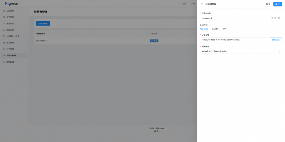 Higress 基于 API 网关的消费者鉴权能力支持 API Key 的二次分租,使用者在对外提供服务时,可以屏蔽掉模型提供商的 API Key,在网关上签发自己的 API Key 供用户使用,从而可以兼容历史调用方的 API Key;除了能够控制消费者的调用权限和调用额度,配合可观测能力,还可以对每个消费者的 token 用量进行观测统计。