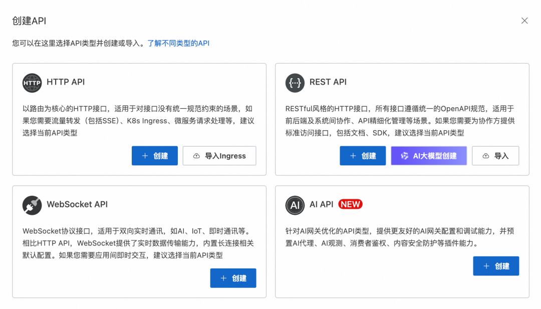 阿里云云原生 API 网关是 Higress 的云上托管产品(可以点击原文了解详情)。云原生 API 网关特别推出了 AI API 作为 AI 流量的管理入口: