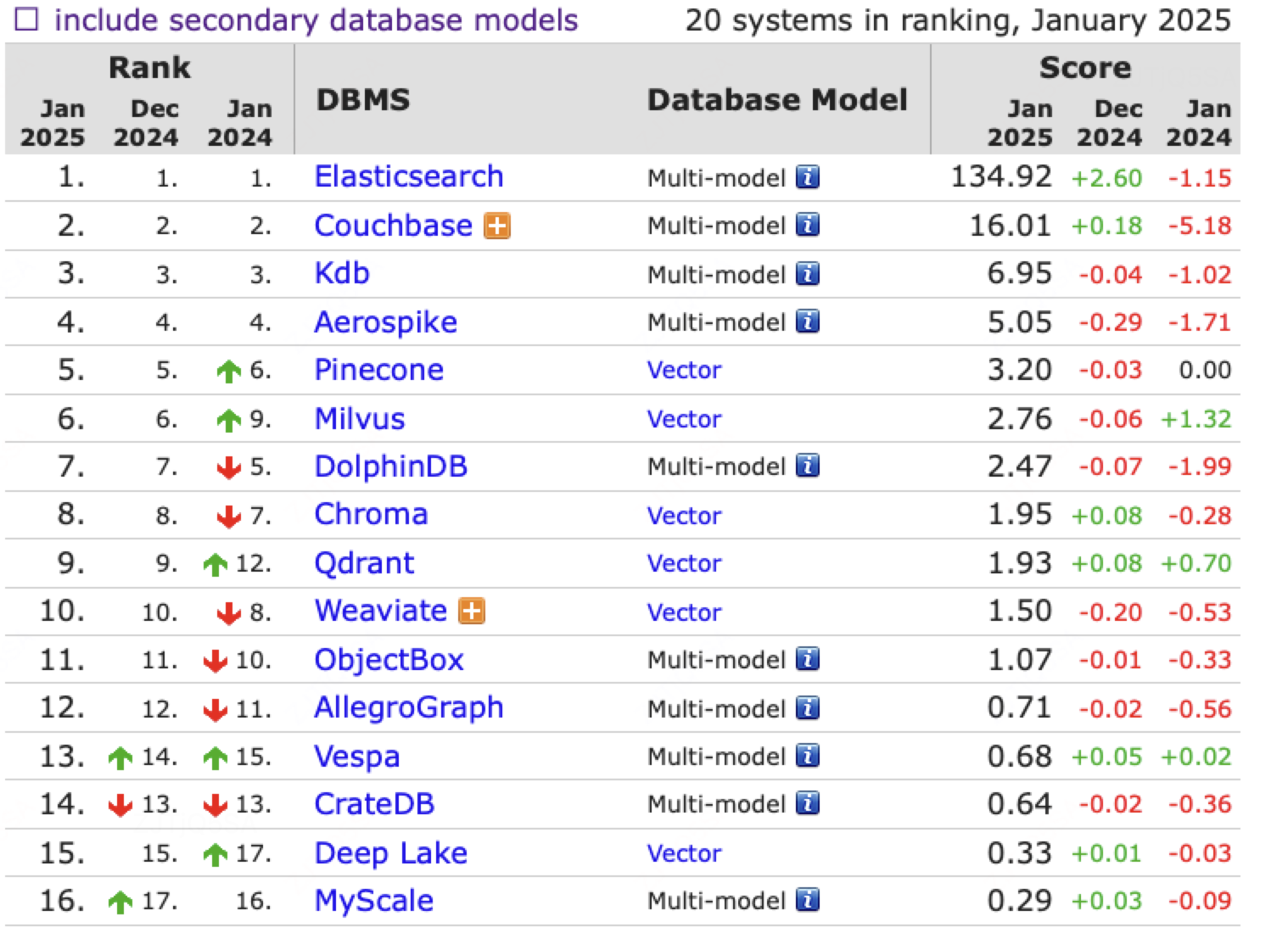 对比维度 | Milvus | Elasticsearch | PostgreSQL |