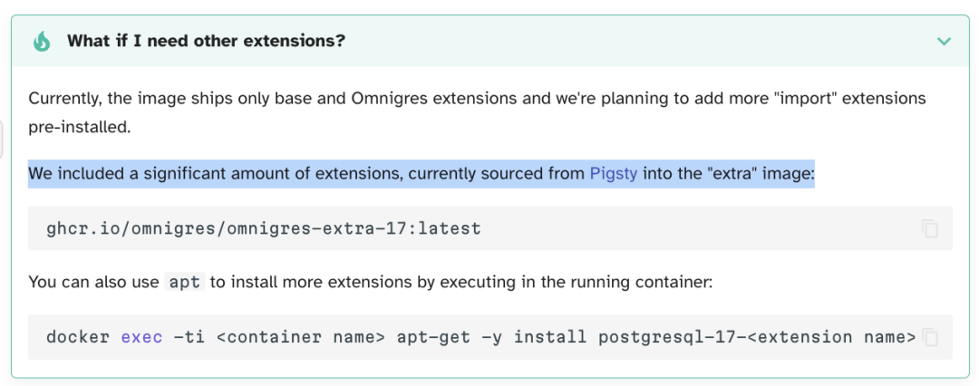 Omnigres 提供的 33 个 PG 扩展插件现在可以在 Pigsty 中开箱即用,而 Omnigres 提供的容器镜像中也包括了 Pigsty 的 300+ 扩展,可谓开源生态互惠共赢之典范。