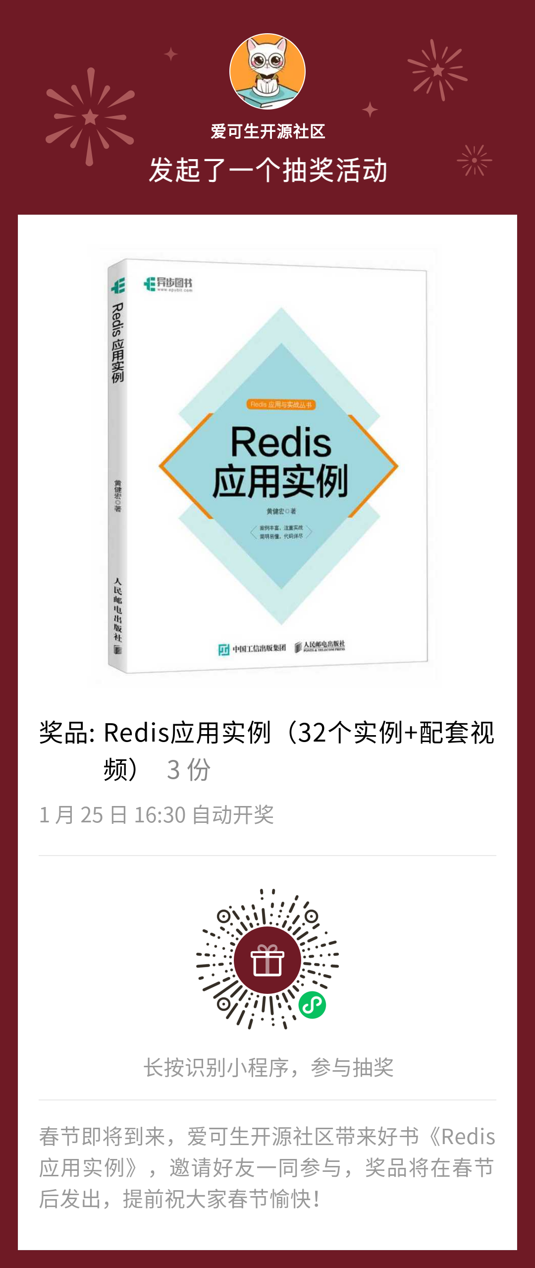 关注爱可生开源社区公众号的用户均可参加; 用户可扫描下方活动程序码,参与抽奖;
