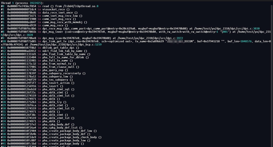 4.通过以下命令打印当前会话线程(添加字段的会话线程,线程号3922425来源于 v$sessions 的 THRD_ID 字段)的堆栈。