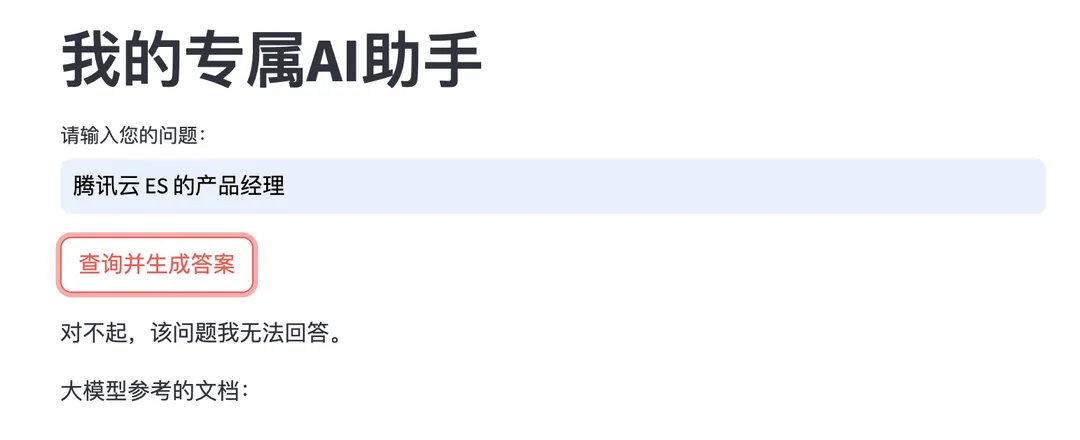 import streamlit as stfrom elasticsearch import Elasticsearchfrom deepseek import deepseek_chates_client = Elasticsearch("ES集群访问地址",basic_auth=("用户名", "密码"))def get_elasticsearch_results(query):es_query = {"knn": {"field": "content_embedding","num_candidates": 100,"query_vector_builder": {"text_embedding": {"model_id": ".multilingual-e5-small_linux-x86_64","model_text": query}}},"query":{"match":{"content":query}},"rank":{"rrf":{"window_size":100,"rank_constant":20}}}result = es_client.search(index="index-name", body=es_query)return result["hits"]["hits"]def create_deepseek_prompt(results,question):context = ""for hit in results:source_field = hit["_source"]["content"]hit_context = source_fieldcontext += f"{hit_context}\n"prompt = f"""Instructions:回答此问题:{question}回答时,你只能参考文档{context} 生成答案,如果无法生成答案,请回复:对不起,该问题我无法回答"""return promptdef generate_deepseek_completion(user_prompt, question):response = deepseek_chat(user_prompt, question)if 'error' in response:return f"Error: {response['error']}"return response['choices'][0]['message']['content']def format_result(hit):title = hit["_source"]["title"]return f'[{title}]'def main():st.title("我的专属AI助手")# 创建输入框和查询按钮question = st.text_input("请输入您的问题:")if st.button("查询并生成答案"):elasticsearch_results = get_elasticsearch_results(question)user_prompt = create_deepseek_prompt(elasticsearch_results,question)system_prompt = f"""你是一个问答任务的助手。使用呈现的上下文真实、实事求是地回答问题。"""openai_completion = generate_deepseek_completion(system_prompt, user_prompt)# 显示结果st.write(openai_completion)# 展示Elasticsearch查询结果st.write("大模型参考的文档:")for hit in elasticsearch_results:st.markdown(format_result(hit))if __name__ == "__main__":main()