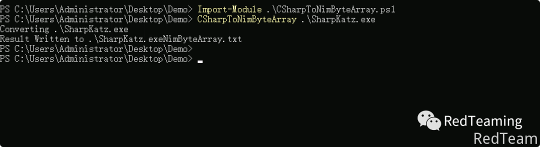 作者提供了一个ps脚本将exe转为符合nim的bytes数组。
