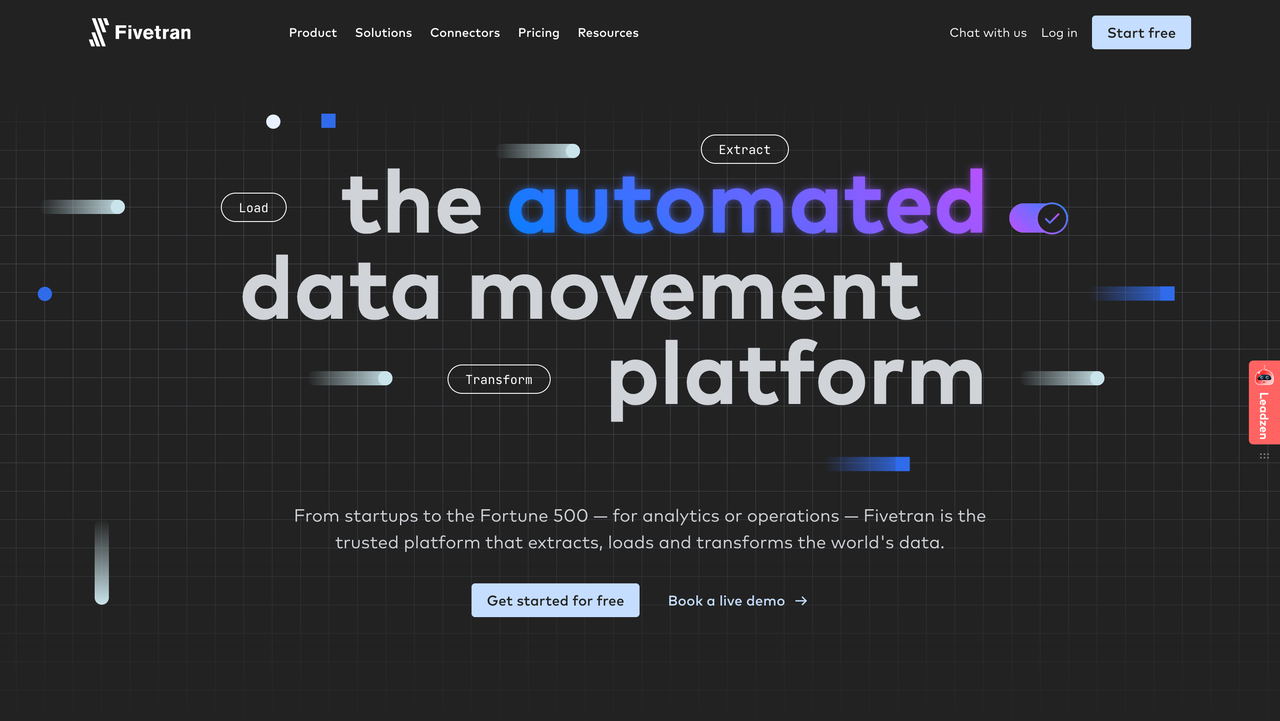 Fivetran 是一个自动化数据集成平台,长于同步生成于不同来源的各种数据,比如云端程序、数据库和日志。使用Fivetran,你就可以以最小的延迟从数据库中高效转移大量数据。即便当下的系统架构和 API 技术不断发展,它依旧能确保数据的无缝同步。