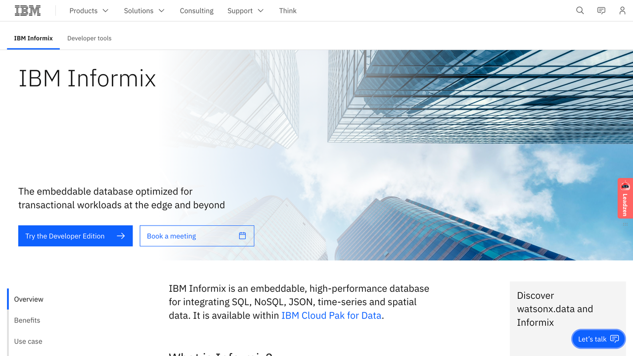 IBM Informix 是一个值得信赖的嵌入式数据库,旨在实现 OLTP(联机事务处理)和物联网(IoT)数据处理的最佳性能。Informix 以其对 SQL、NoSQL、时间序列和空间数据的无缝集成见长。具备可靠性、灵活性、易用性和高性价比优势,从开发者到全球企业用户都能从中受益。