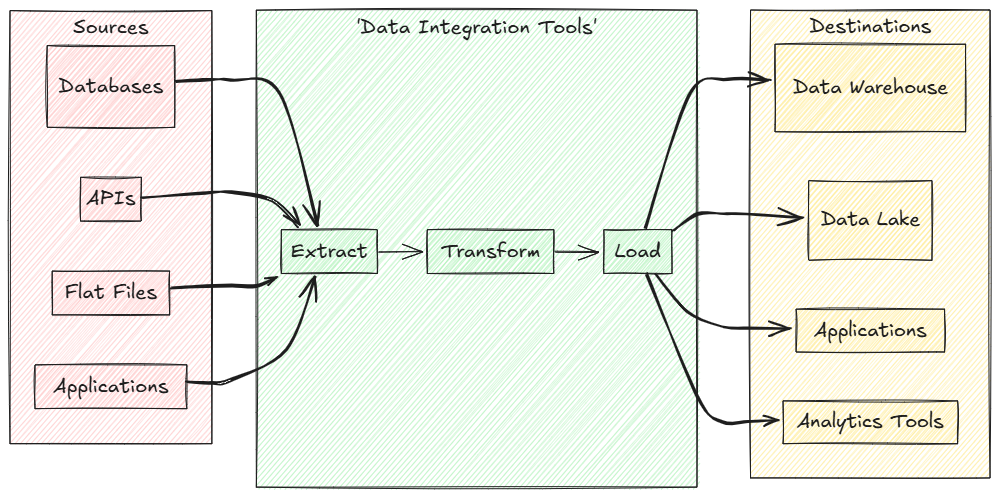 数据集成工具是针对相关需求设计的专业软件平台,用于从多个数据源(如数据库、应用程序、文件等)提取数据,将其转换为所需格式,并加载到目标系统(如数据仓库、数据湖或应用程序)中,以便进行分析或进一步操作。