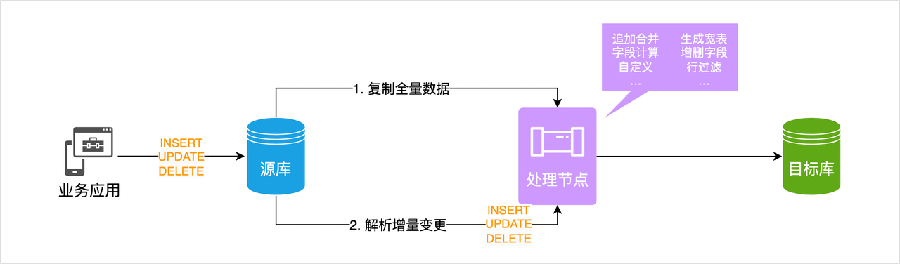 数据复制:TapData 的数据同步包括全量同步和实时增量同步两部分,可帮助您快速实现同/异构数据源间的实时同步,适用于数据迁移/同步、数据灾备、读性能扩展等多种业务场景,实现的过程如下图所示。