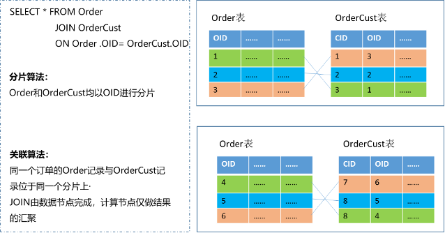 可下推的JOIN,即JOIN操作由数据节点完成,Proxy层对JOIN结果进行汇总,这种方式效率更高,因为存储和计算在一起,例如,同维度的JOIN和复制表的JOIN。