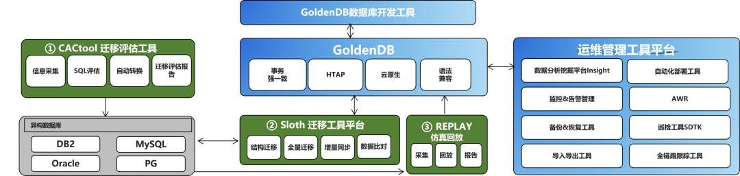 数据库是信息系统的核心底座,承载着大量历史数据,在数据库迁移过程中须保证这些数据不能丢,更要减少对业务运行的影响。为实现该目标,金篆GoldenDB针对用户需求,打造了业界最全数据库迁移工具,主要包括: