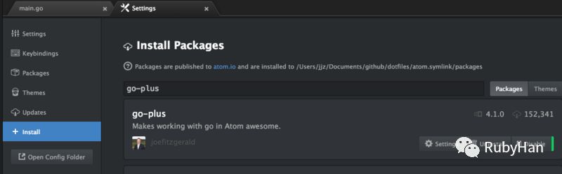 1.安装go-plus插件,这个插件提供了Atom中几乎所有go语言开发的支持,包括 tools, build flows, linters, vet 和 coverage tools。它还包含很多代码片段和一些其它特性。