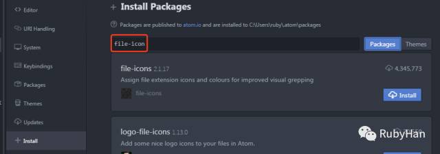3.安装file-icon插件,它提针对不同后缀的文件,提供了大量的icon显示。