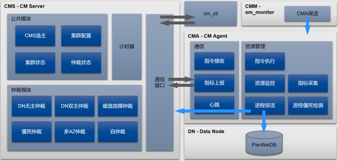 [omm@db01 ~]$ cm_ctl switchover -n 1 -D /data/panweidb/data