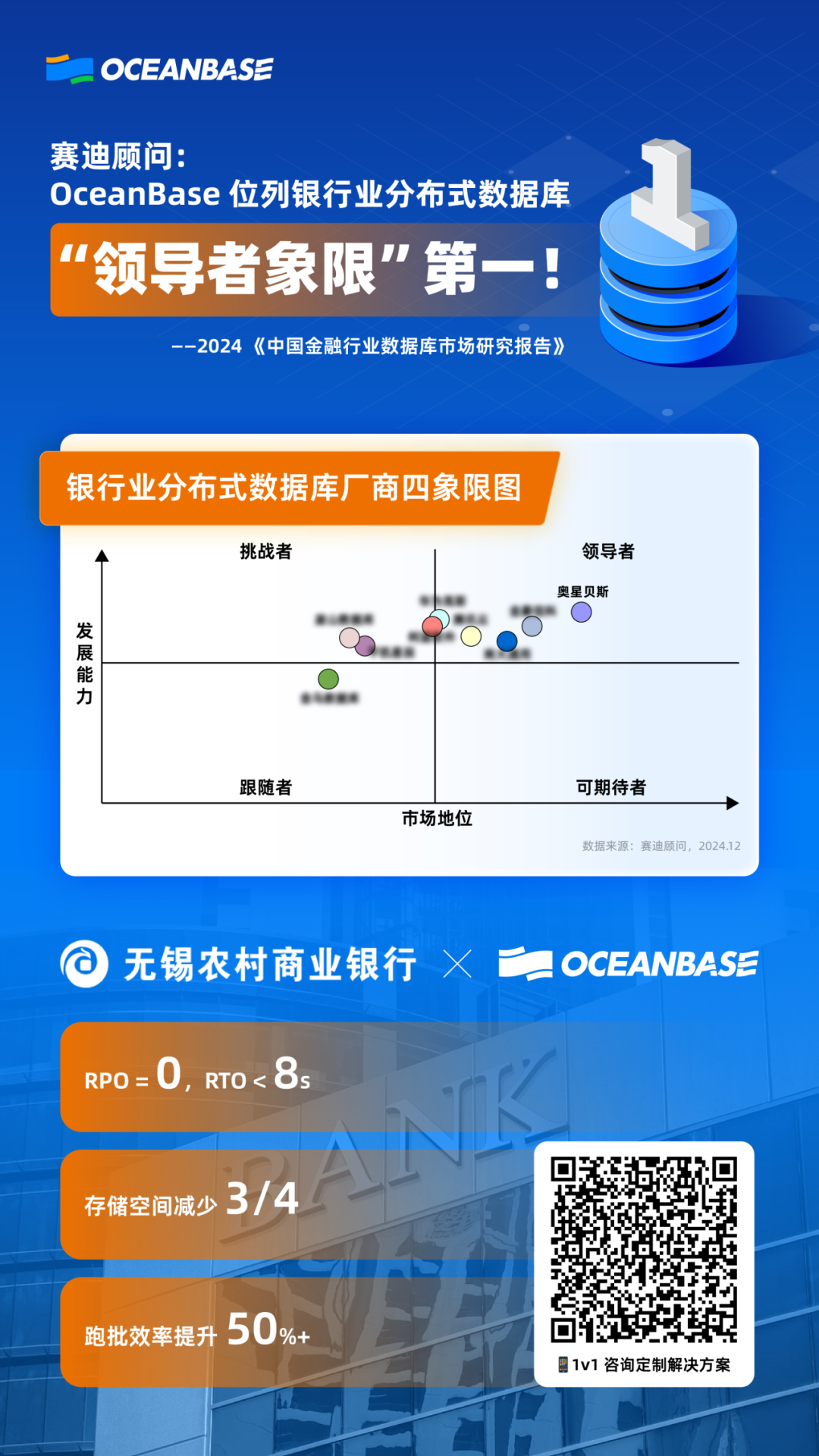 在经过多家数据库厂商的 POC 验证,以及对各家提供的数据库建设方案进行评估后,无锡农商行最终选择综合表现第一的 OceanBase 作为新一代信贷核算系统的数据库平台。
