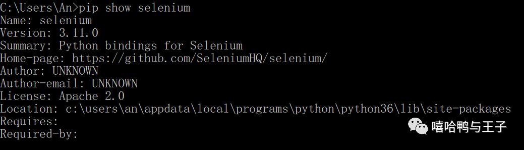 安装完成后,输入"pip show selenium"