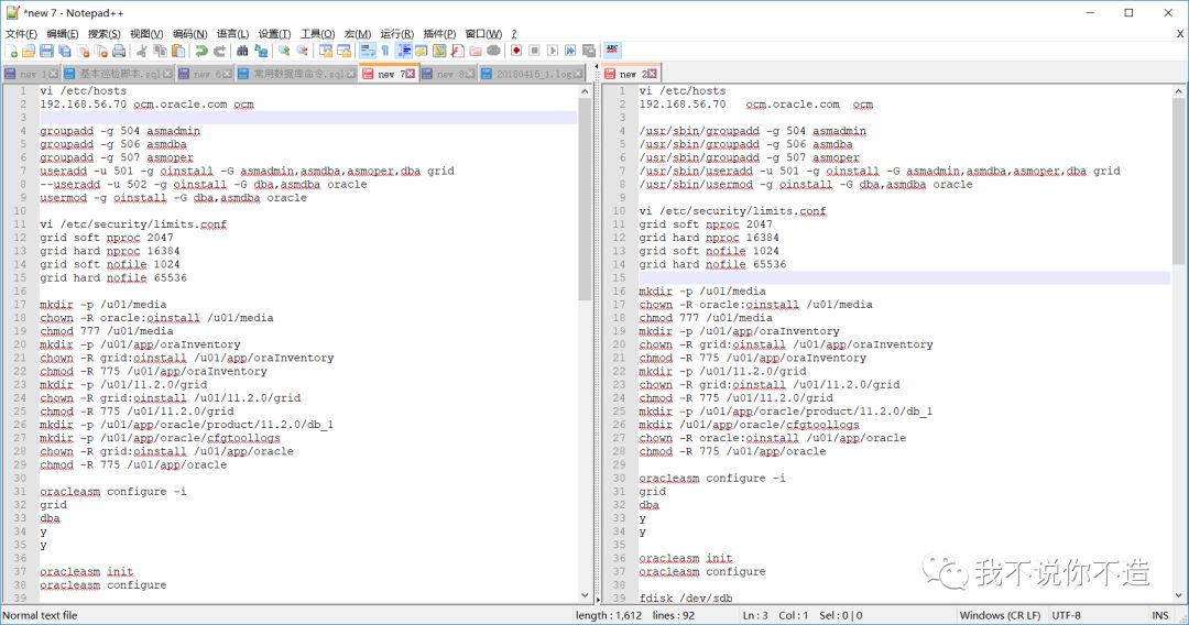 开始安装实验环境的时候,看着老师给的文档,顺着老师的步骤往下做。虽说一开始也有点疑惑,毕竟很多工作中需要的步骤都被忽略了,但看到每一步都没有报错,也就这样继续了。直到创建数据库的时候,直接跳出“ORA-12547:TNS:lost contact”。回到dbca的前几步修改参数,再次安装,还是报错;快照回滚到安装完数据库软件,重新dbca,依旧报错;再回滚到安装完grid,重新安装数据库软件,再创建数据库,仍然报错;最后创建了一个新的虚拟机,从安装OS开始,依照老师的步骤重新安装,结果还是报错。