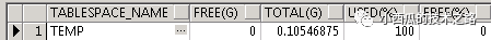 用同事给的sql进行查询SYSAUX,’SYSTEM,UNDOTBS1,TEMP表空间时,发现TEMP表空间使用率为100%