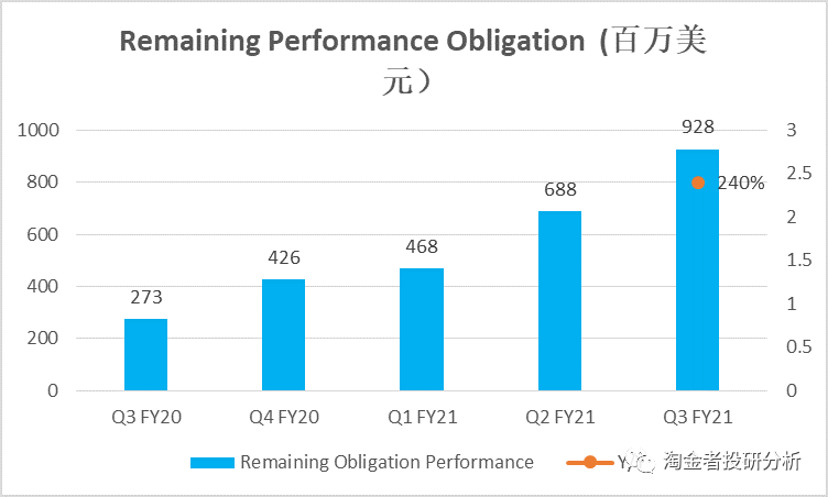 RPO增长比收入的增长强劲,并且正在扩大,为未来营收提供了高确定性。这个指标衡量了公司预计从当前客户那里确认的收入,包括递延收入和预计未来开单的合同承诺。