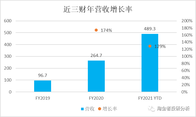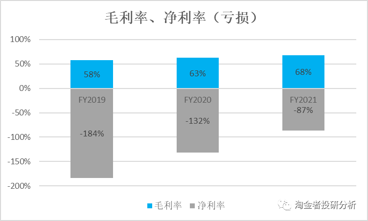 2021财年YTD营业收入增速129%,在美股科技股中处于领先水平,高于美国热门科技股Zoom(111%)、Shopify(60%),显著高于美股热门科技股平均增长率水平(72%)。