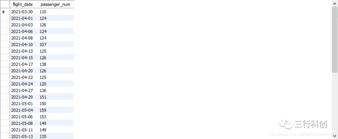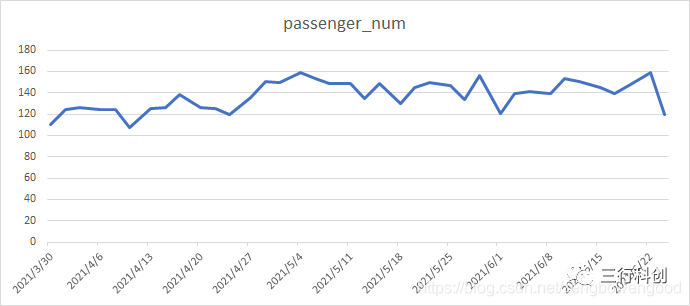 例2 下图是某航司2021年新航季某线路的航空乘客人数统计数据,可以看到乘客人数是每班每班进行统计的,但是不是每天都飞的,仔细查看该航班的班期是246(每周二,四,六飞),乘客人数都在100人以上。