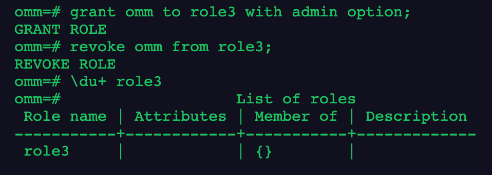 过程中可以使用 \du 或 \du+ 查看角色信息!