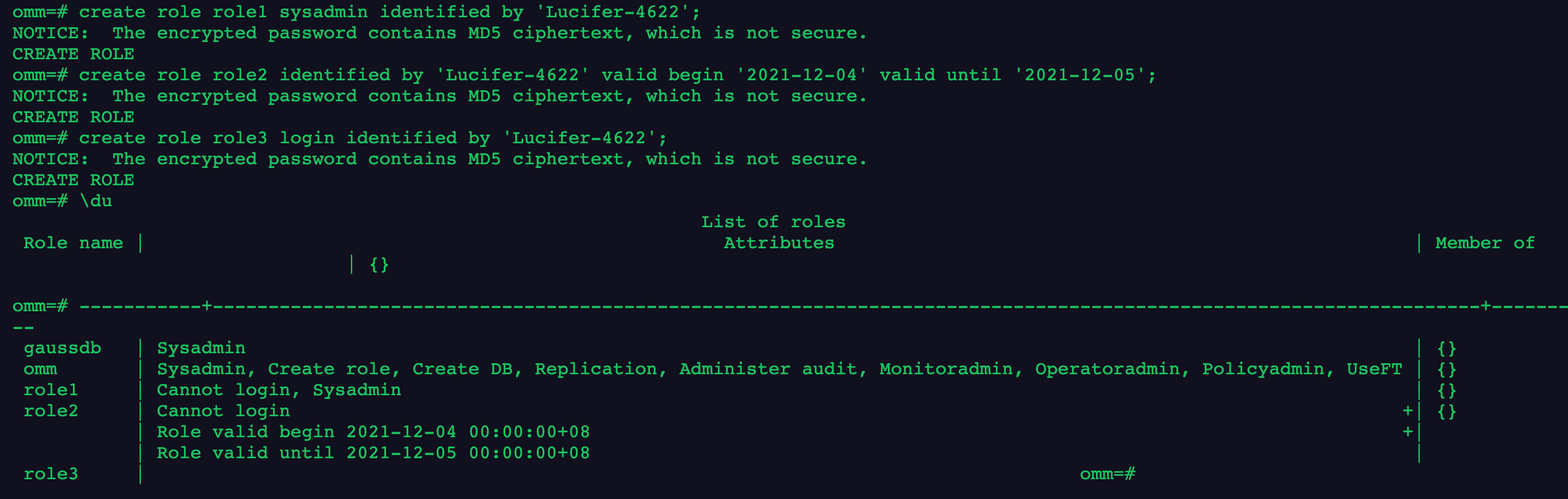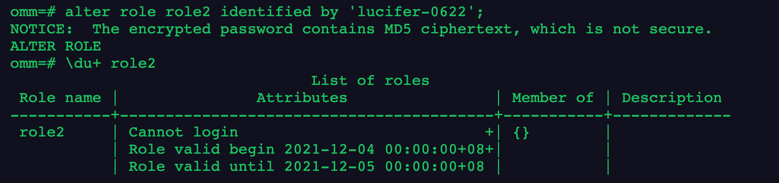 create role role2 identified by 'Lucifer-4622' valid begin '2021-12-04' valid until '2021-12-05';
